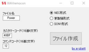 WAVremoconは、スマホ等のヘッドホン端子に接続した赤外線LEDを発光させ、機器を制御するためのリモコン用音声ファイルを生成するwindows用アプリです。